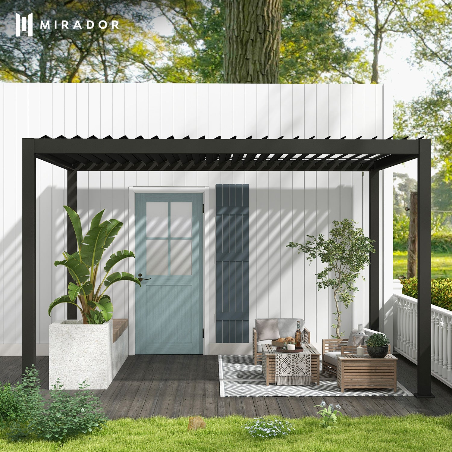 Pergolas with Mirador's textured wood grain finish by Takasho give you the look and feel of real wood with none of the worry and hassle. Unlike regular timber, it won’t rot, splinter, or easily discolor. So, instead of staining, waterproofing, or any other maintenance, you can simply kick back, relax and discover more to enjoy.